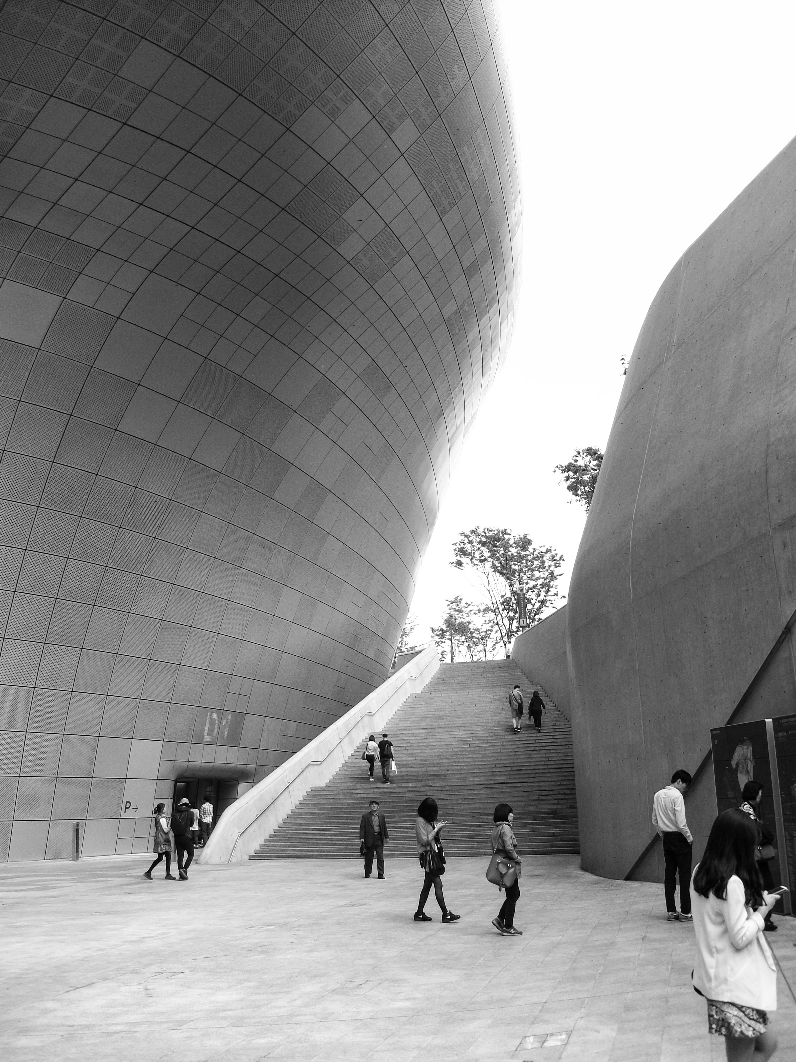 I find it ironic then that these “buildings from the future” relate to spaces we inhabited as cavemen. Just as primitive man felt the need to express events and happening in drawings on the walls of their caves, humans of the future exhibit art and design on the walls of these futuristic caves as well. Most of the spaces in the main building are exhibition halls and galleries. As the icon of design and fashion in Seoul, the DDP in some way embodies how far we have come as a species. The Dongdaemun Design Plaza celebrates the human capacity to design, to invent and to adapt. Experiencing the building and spaces made me reassess my assumptions about humans relating to these grandiose Neo-Futuristic designs. I still think that it revels in excess, but I do think you should go there and see for yourself what is possible and what the human mind has been able to create.