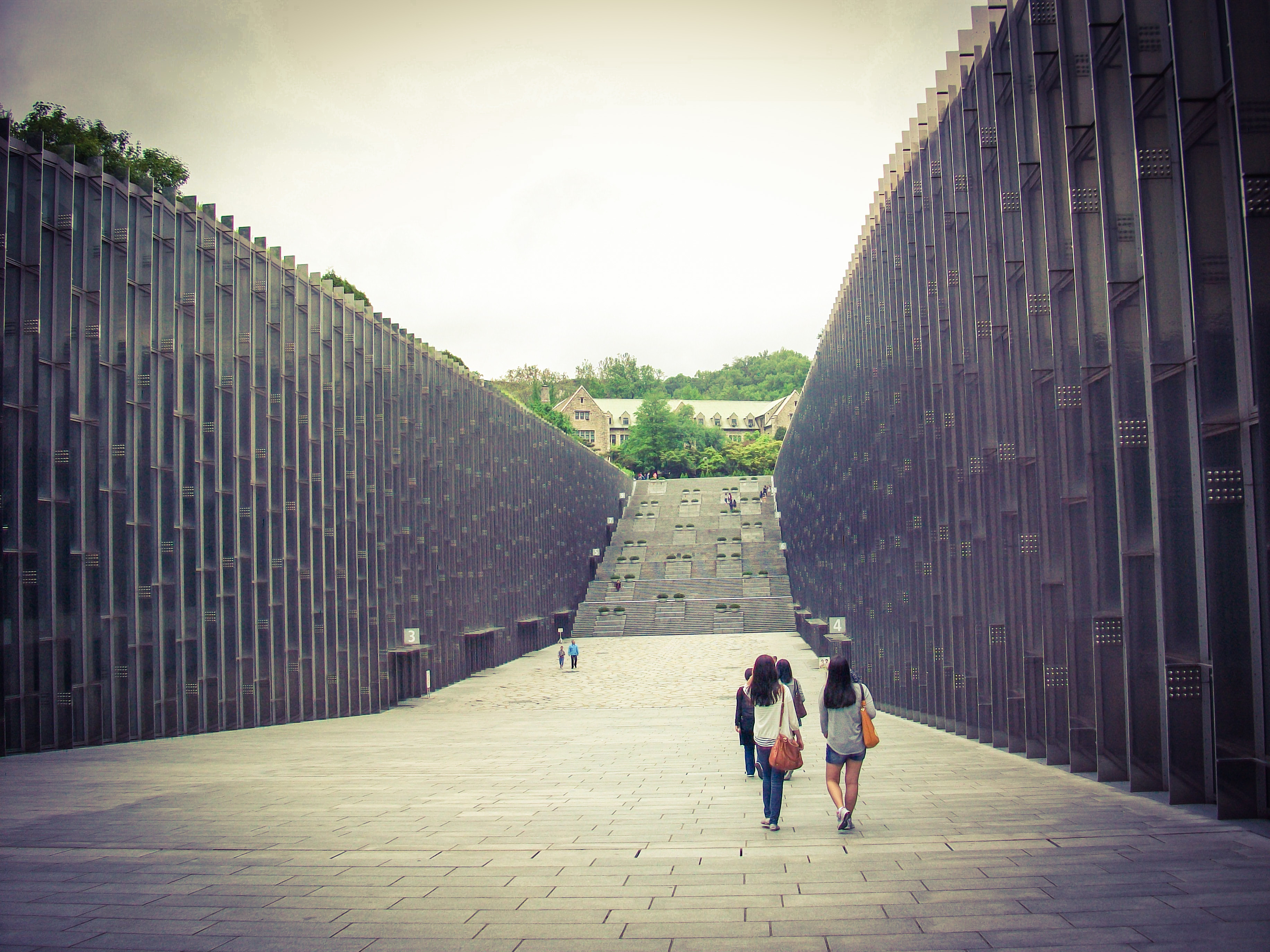 I did like the fact that the building sinks into the ground and creates two garden spaces on the ground level where students could sit and enjoy views of the city. I found it interesting that a building designed for a woman’s university took the form of a “valley” and did not rise to the sky as so many of the surrounding towering phalluses did. Maybe I’m just looking for metaphors where there are none.
